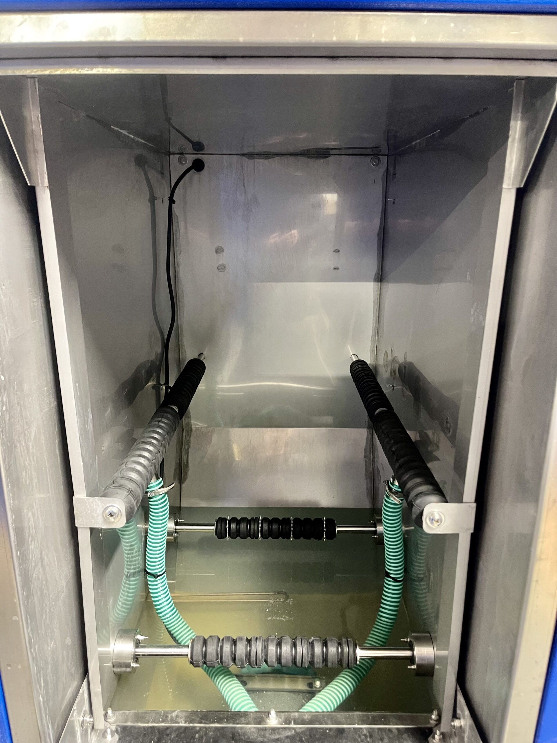 3. Боковые ролики разделены для продления срока службы (вращаются в разные стороны), а также увеличены в размере, чтобы снизить вероятность нанесения повреждения во время загрузки и выгрузки колес в аппарат для мойки колес.